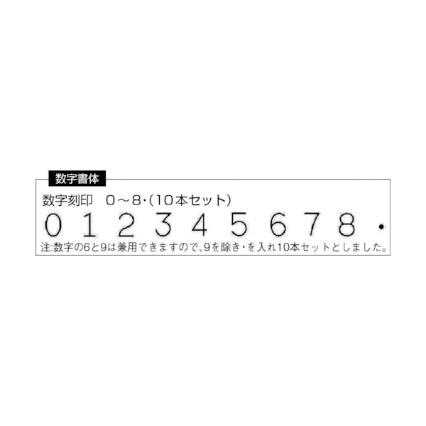 ・数字の6と9は兼用できますので、9を除き「・」を入れ10本セットとしました