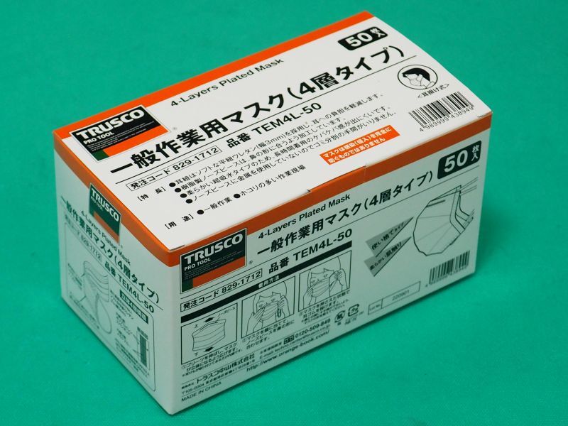TRUSCO 一般作業用マスク(耳掛けタイプ)4層(50枚入) TEM4L-50 [829-1712]