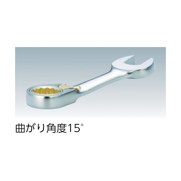 ・ラチェットレンチの柄部は曲がり角度15°と小さいので高さ制限を受ける箇所の作業に最適です。