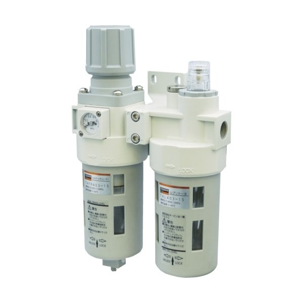 ・フィルタ付レギュレーターとルブリケータを専用アタッチメントでコンパクトに接続したユニットです。