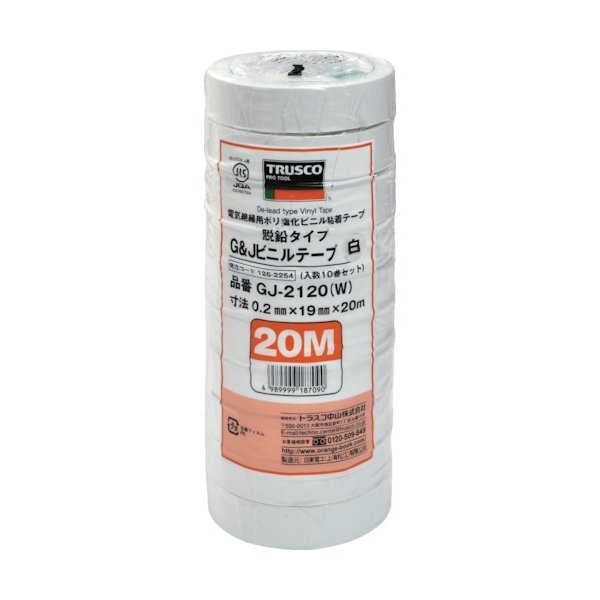 TRUSCO 脱鉛タイプビニールテープ 19mmX20m 10巻入リ 白 GJ-2120(W)[126-2254]