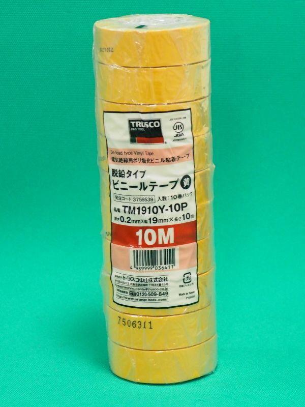 TRUSCO 脱鉛タイプビニールテープ 19mmX10m 10巻入リ 黄 TM1910Y-10P [375-9539]