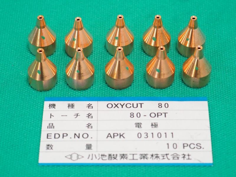 酸素プラズマ切断トーチ用部品 80OPT用 チップ10個 緑 小池酸素工業(株)