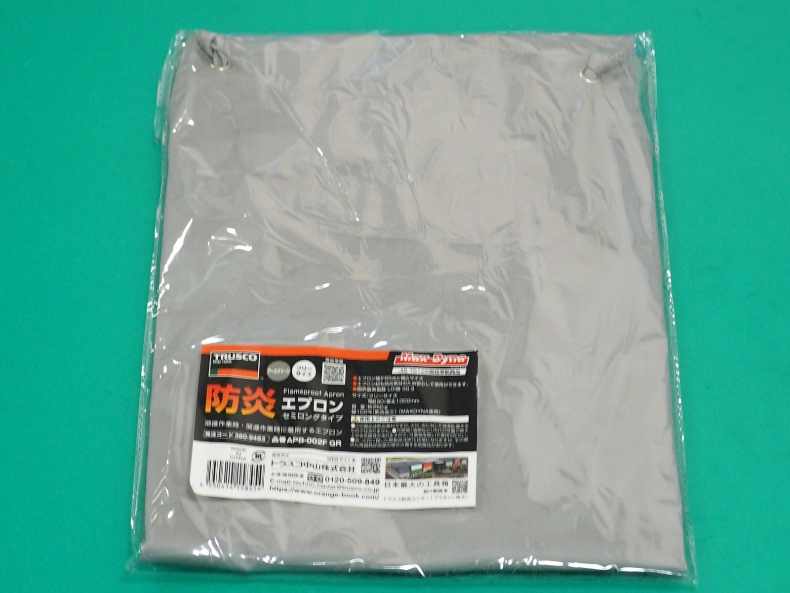 TRUSCO 防炎エプロンセミロング アースグリーン(マックスダイナ)APB-002F GR [380-9483] [93809483]