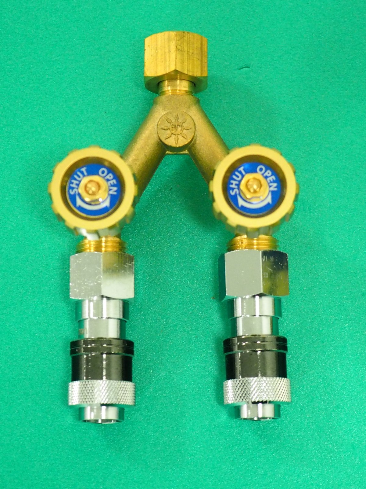 酸素調整器に取付ける分岐管 二又バルブワンタッチ仕様