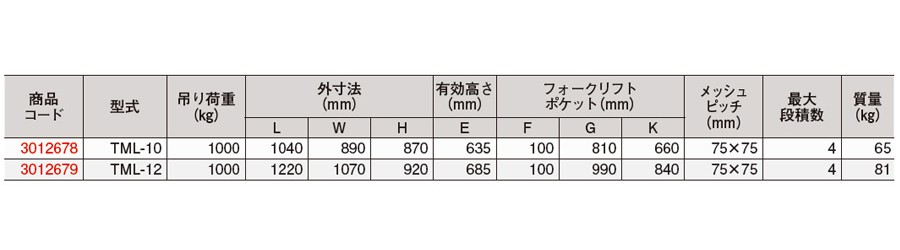 ・最大積載荷重(kg):1000