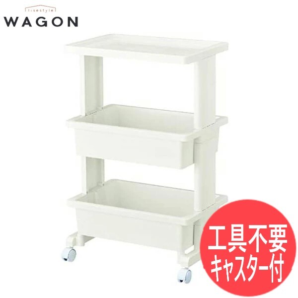 【ホワイト】リセスタイル ツールボックス 3段テーブルワゴン ツールストッカー 組み立て式