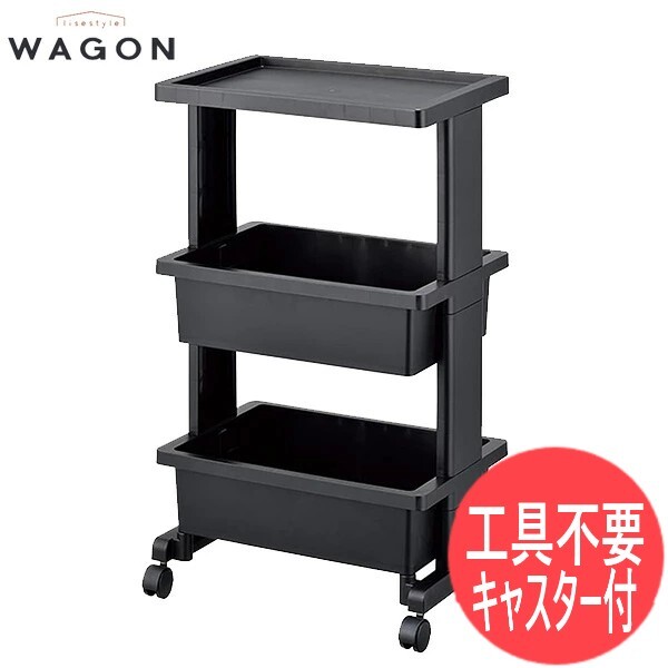 【ブラック】リセスタイル ツールボックス 3段テーブルワゴン ツールストッカー 組み立て式 [4528302262026]