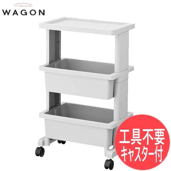 【ライトグレー】リセスタイル ツールボックス 3段テーブルワゴン ツールストッカー 組み立て式 [4528302262040]