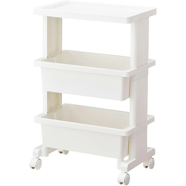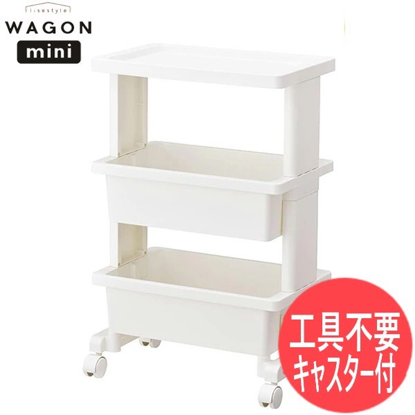 【ホワイト/ミニサイズ】リセスタイル コンパクト ツールボックス 3段テーブルワゴン ツールストッカー 組み立て式 [4528302263009]