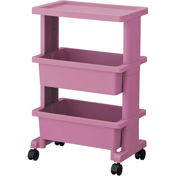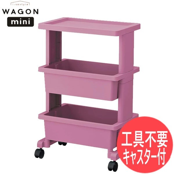 【ピンクグレーホワイト/ミニサイズ】リセスタイル コンパクト ツールボックス 3段テーブルワゴン ツールストッカー 組み立て式 [4528302263047]