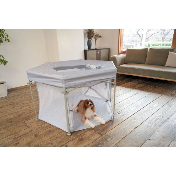 【収納袋・屋根付】おりたたみペットサークル わんパーク (グレー) ペットゲージ 脱走防止 侵入防止 災害避難 ペットホテル [4571303940233]