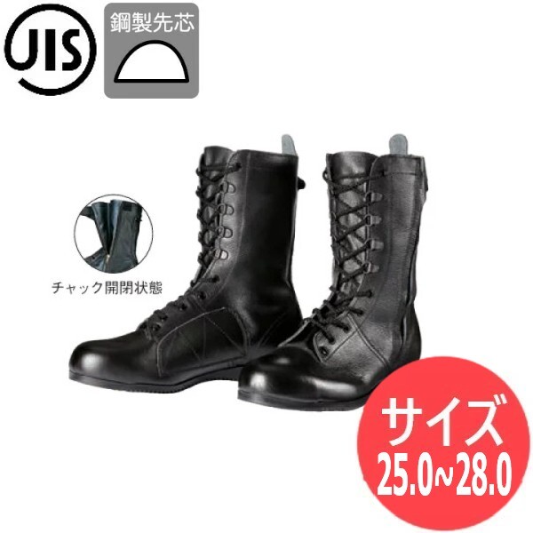 【サイズ:25.0〜28.0/C式製法】ドンケル JIS T8101(安全靴) 一般作業用安全靴 出初め チャック付き セーフティーブーツ セーフティーシューズ 作業靴 鋼製先芯 長編み上げ靴 DONKEL