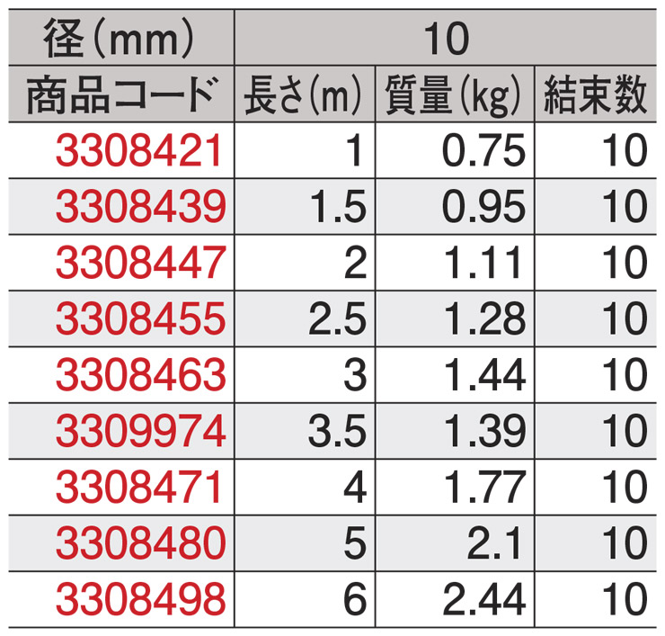 ・スリング径(mm):10
