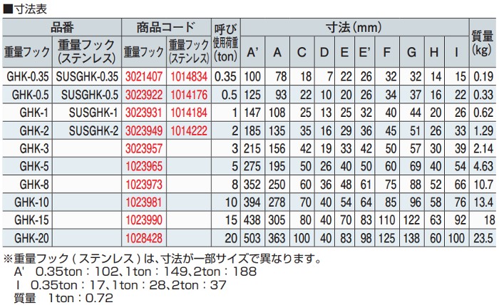 TAIYO 重量フック 外れ止め付 T-1t GHK-1 3023931 大洋製器