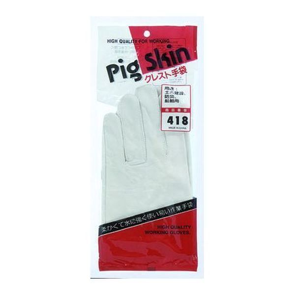おたふく手袋 ピッグスキンクレスト手袋 革手袋 5双セット 418 [4970687000333]
