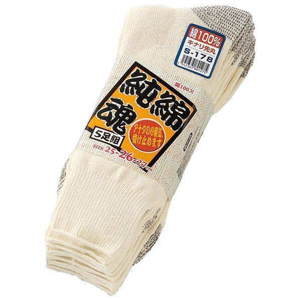 おたふく手袋 純綿魂 タビ型 25足分 (5足組×5セット) キナリ クッションパイル 靴下 ソックス S-179