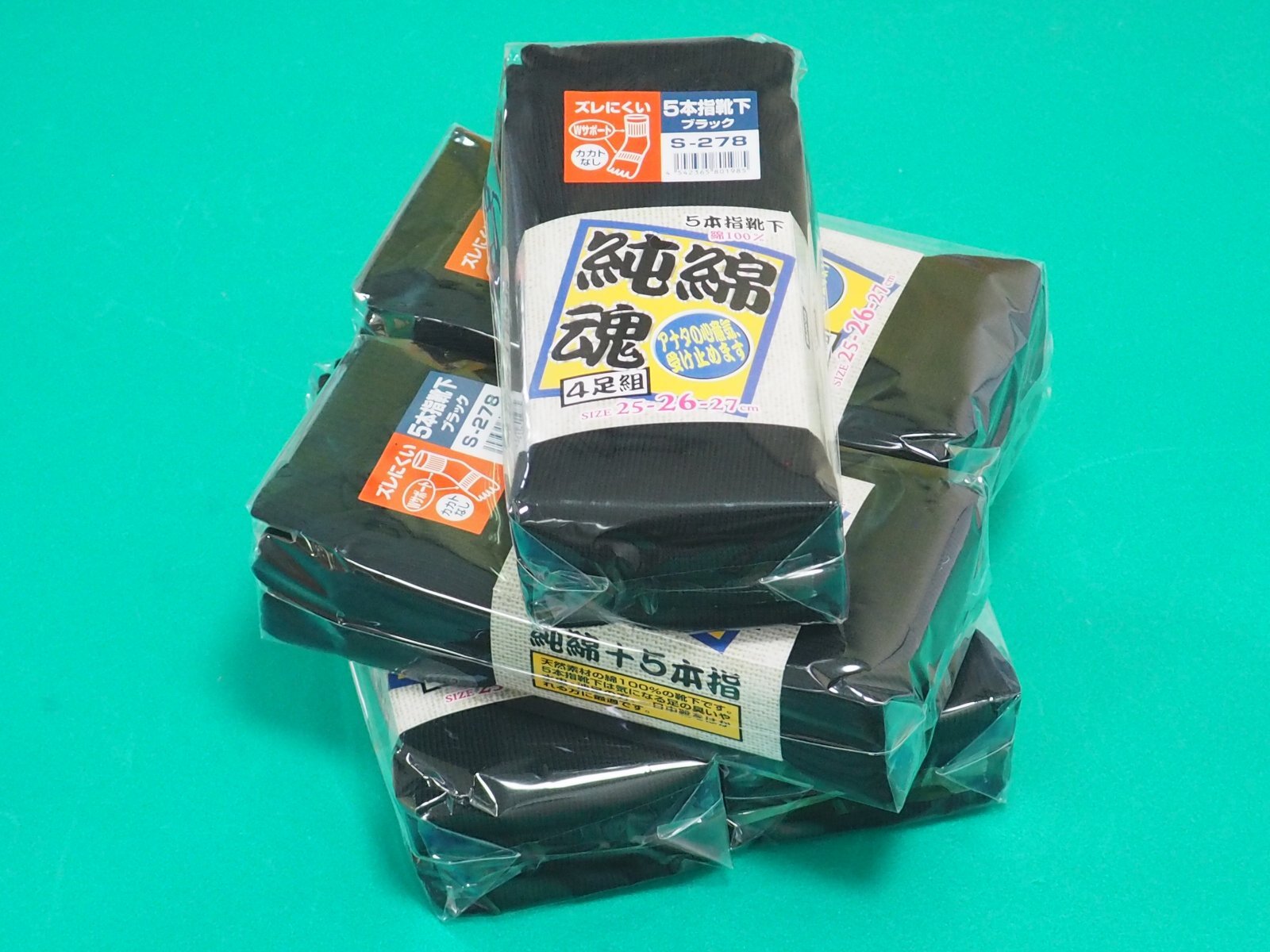品名:純綿魂 5本指 4足組 ブラック