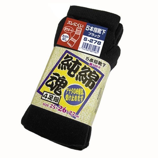 おたふく手袋 純綿魂 5本指 20足分 (4足組×5セット)4足組 ブラック クッションパイル 靴下 ソックス S-278 [4542365801985]