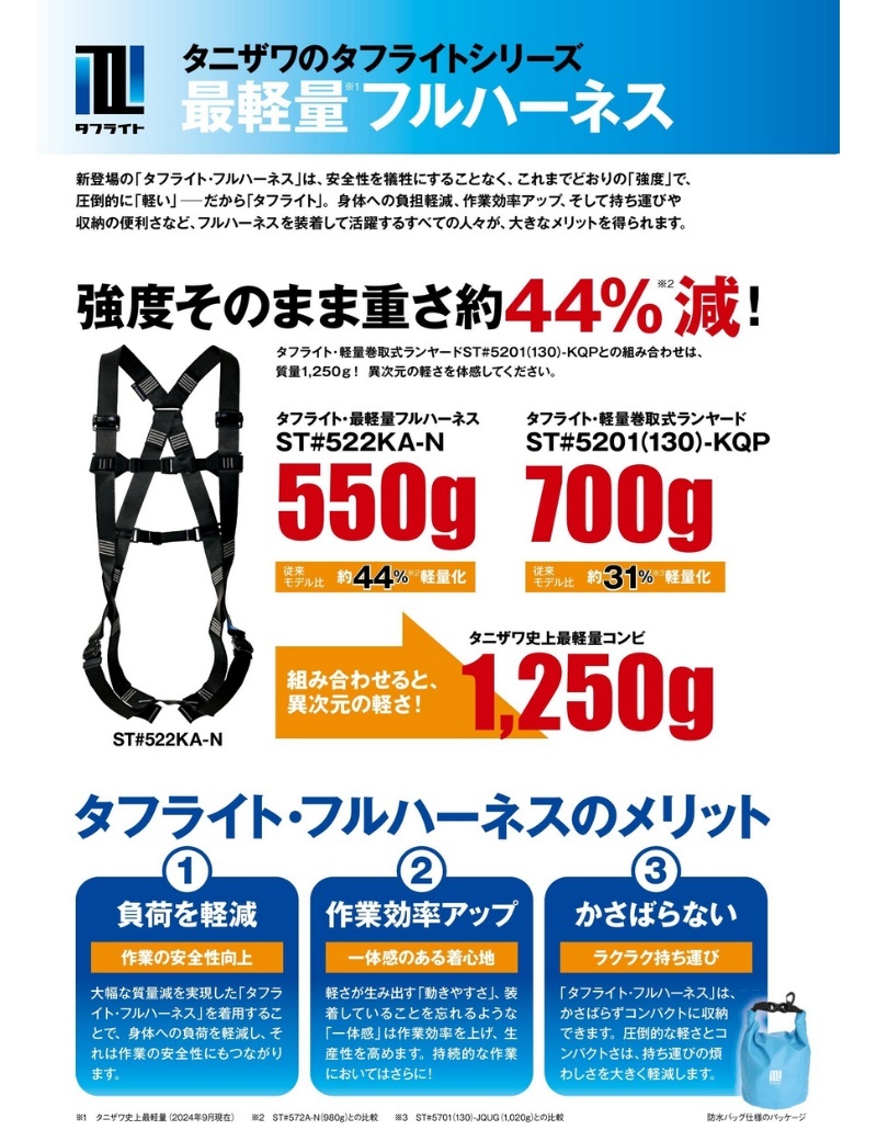 タフライト・軽量巻取式ランヤード(2丁掛け/巻取式)