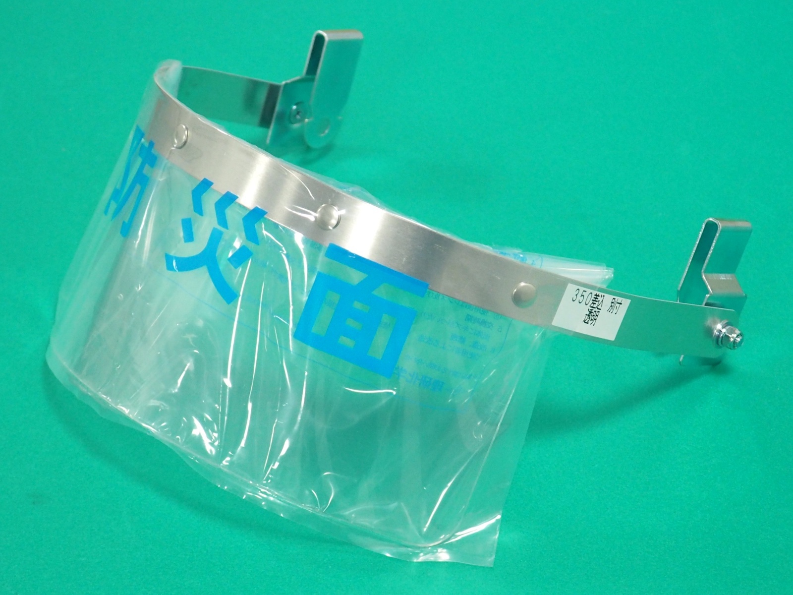 防災面 ヘルメット装着用 350差込 透明 H110xW250 半割加工 理研化学