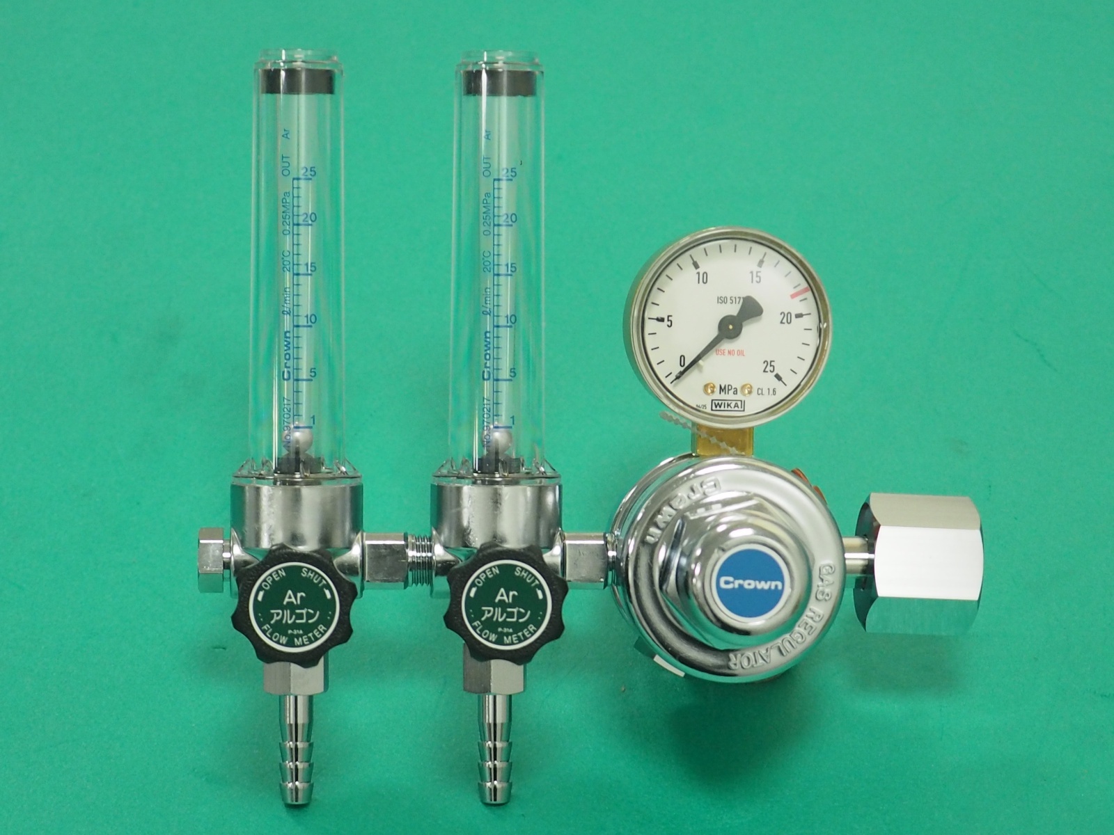 クラウン 二連流量計付二段式圧力調整器 アルゴンガス調整器 FR-IIW ユタカ