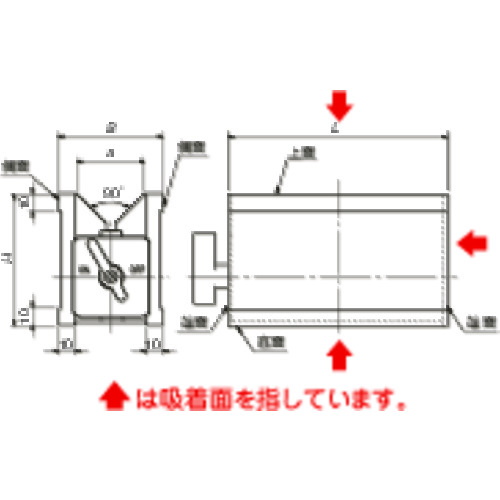 ・吸着面:上面(V面)・底面・背面(端面)