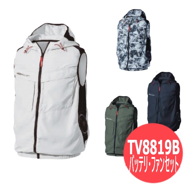 【バッテリー・ファン付き】空冷服 サイドファンフードベスト 送風ウェア 熱中症対策 ファン付き作業服 空調ウェア クールウェア エアコンウェア 冷却ファン付き TV8819B XYDEN