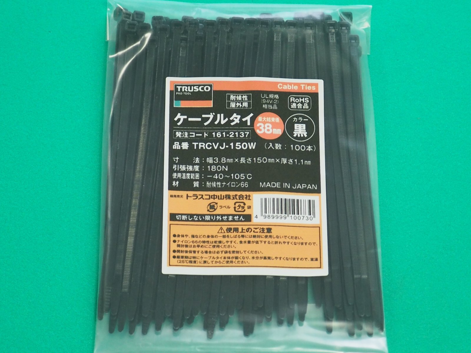 TRUSCO ケーブルタイ 幅3.8mmX150mm 最大結束Φ38 耐候性 100本入 TRCVJ-150W 161-2137 [91612137]