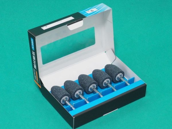 ・高硬度A(ブルー)軸付砥石。最適:鋳物、一般鋼材、低炭素鋼、炭素鋼(生材)。適:ダクタイル、マレアブル、ミーハーナイト、炭素工具鋼(SK)。